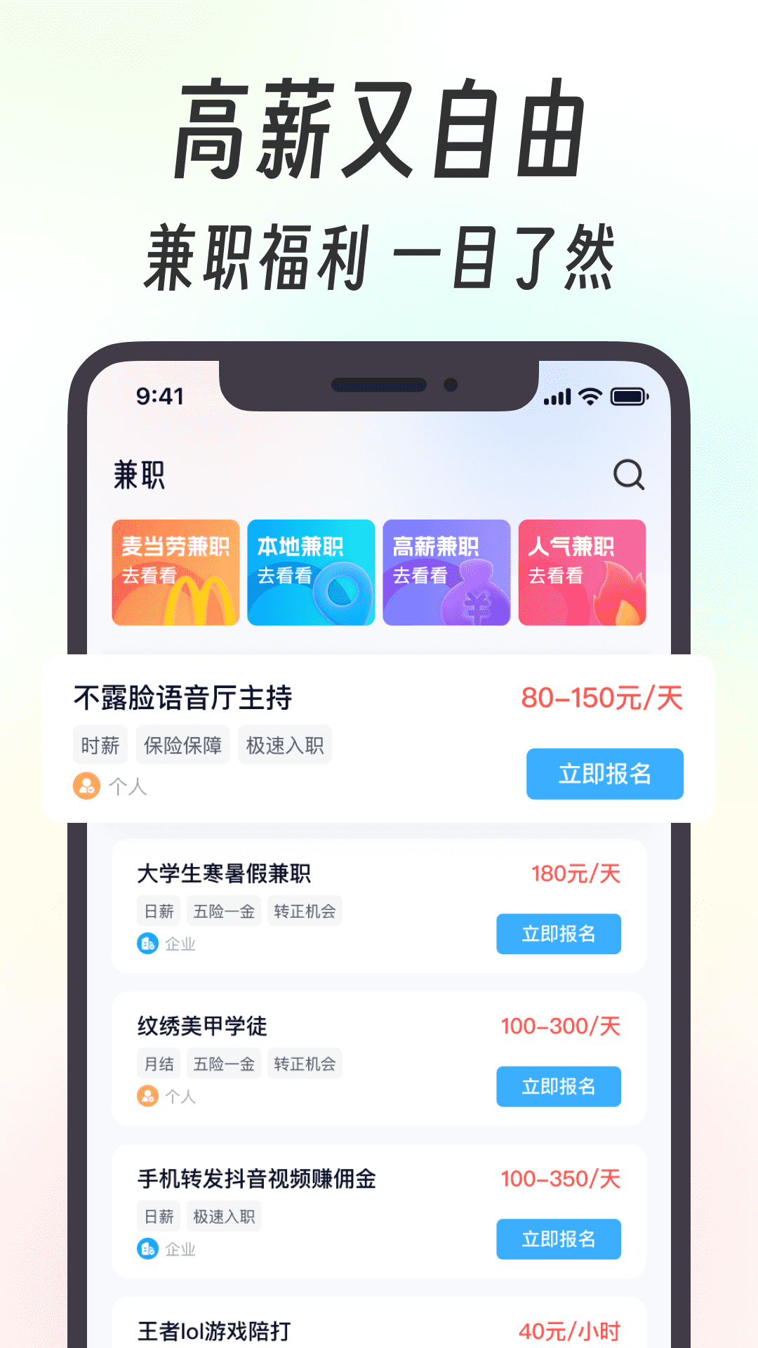 这个平台最厉害的是把传统兼职流程彻底简化了——登录后直接能看到附近或线上岗位,点击立即报名就能接单,连简历都不用反复填。系统自带智能推荐功能,根据你的技能标签(比如会PS、擅长英语)自动匹配高通过率的兼职。特别贴心的是收入管理模块,每笔报酬到账时间、提现记录都清清楚楚,还能设置日结提醒。要是遇到问题,社区里全是真实用户的经验帖,从面试技巧到避坑指南全都有,简直像有个随身兼职顾问。